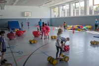 In den Wintermonaten von Oktober bis April werden die Turnhallen geöffnet und darin vielfältige Bewegungslandschaften aufgebaut. Um den Kindern auch in Sommerzeiten ein Bewegungsangebot zu bieten, ist insbesondere in der Corona-Pandemie die Idee des "Bewegten Schulhofs" entstanden. Ab April bis zu den Sommerferien öffnen wir die Schulhöfe für die Grundschulkinder, damit diese Bewegungserfahrungen machen können.